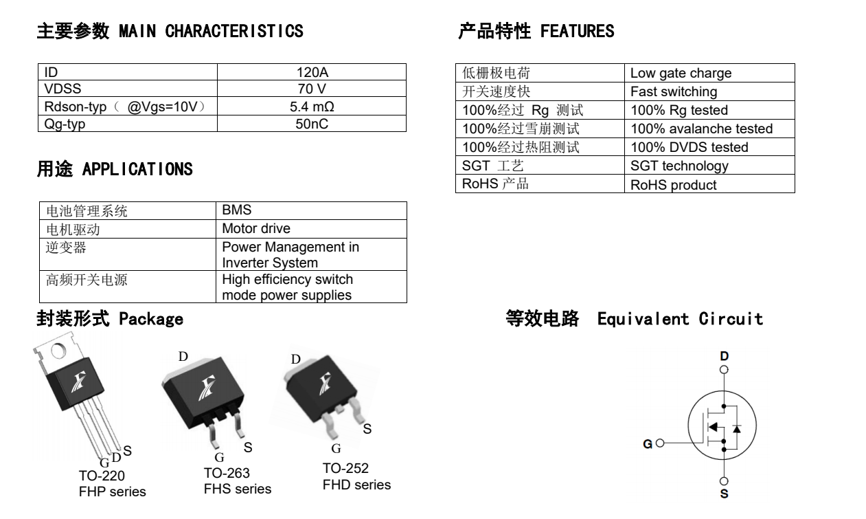 目前國產(chǎn)MOS管中,最新可應(yīng)用于負載開關(guān)電路電路的場效應(yīng)管型號為:FHD80N06B、FHD100N03D、FHD150N03C、FHD120N7F6A,以上4款產(chǎn)品都是可以應(yīng)用于負載開關(guān)電路電路中的。